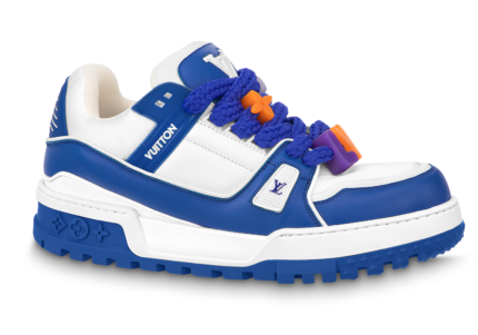 This version of the LV Trainer sneaker combines smooth calf leather with grained calf leather, which is embossed with Louis Vuitton’s iconic Monogram pattern. This cult sneaker was designed by Virgil Abloh, who drew inspiration from vintage basketball sneakers. The rubber outsole, which is decorated with Monogram Flowers, is matched to the upper for a colorblock look.