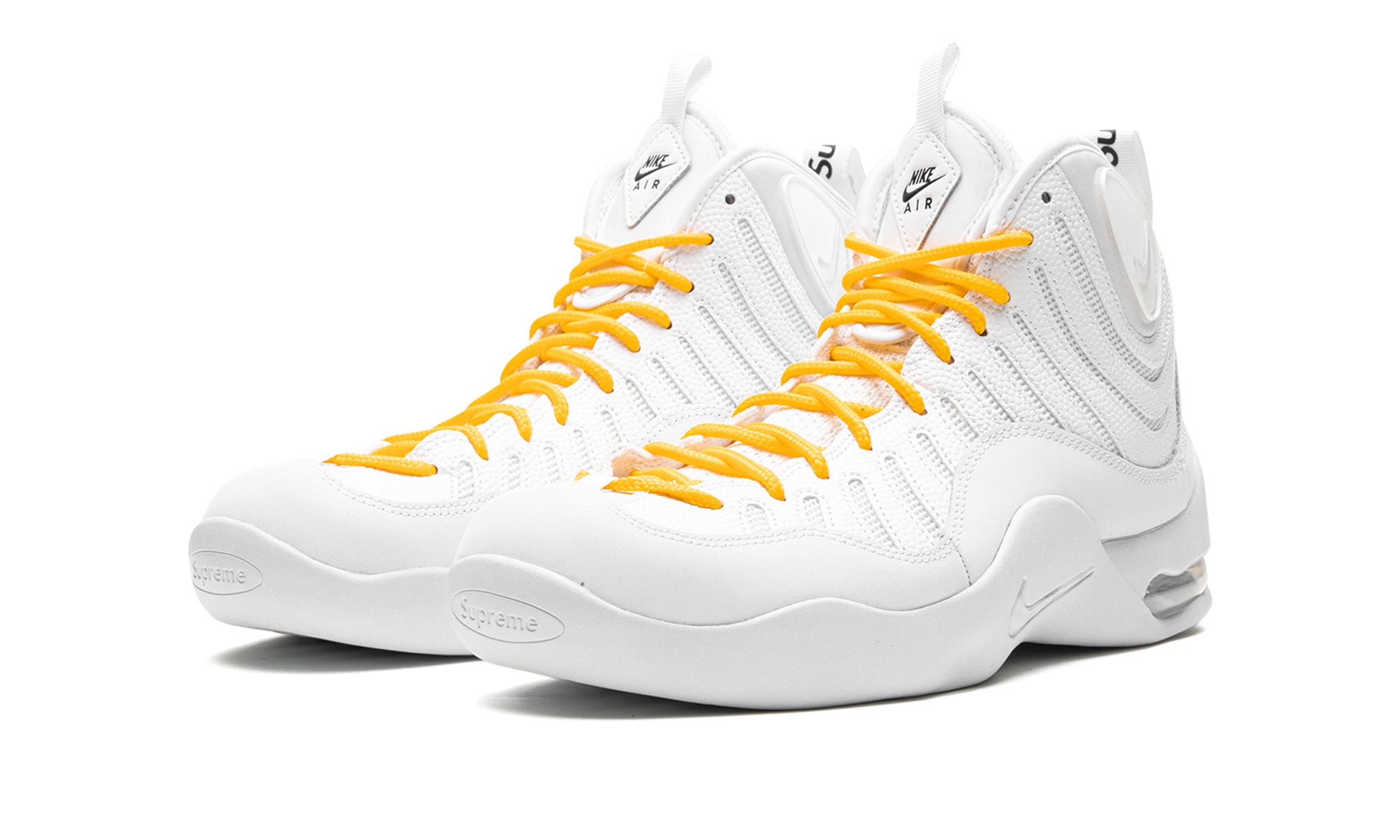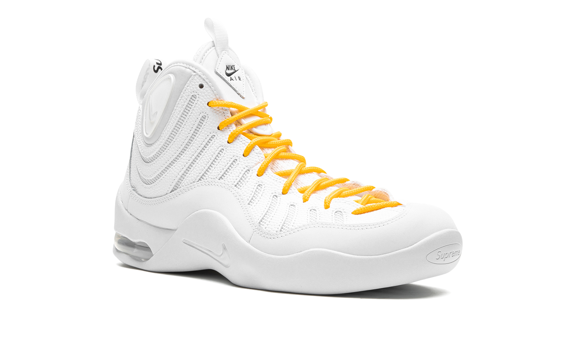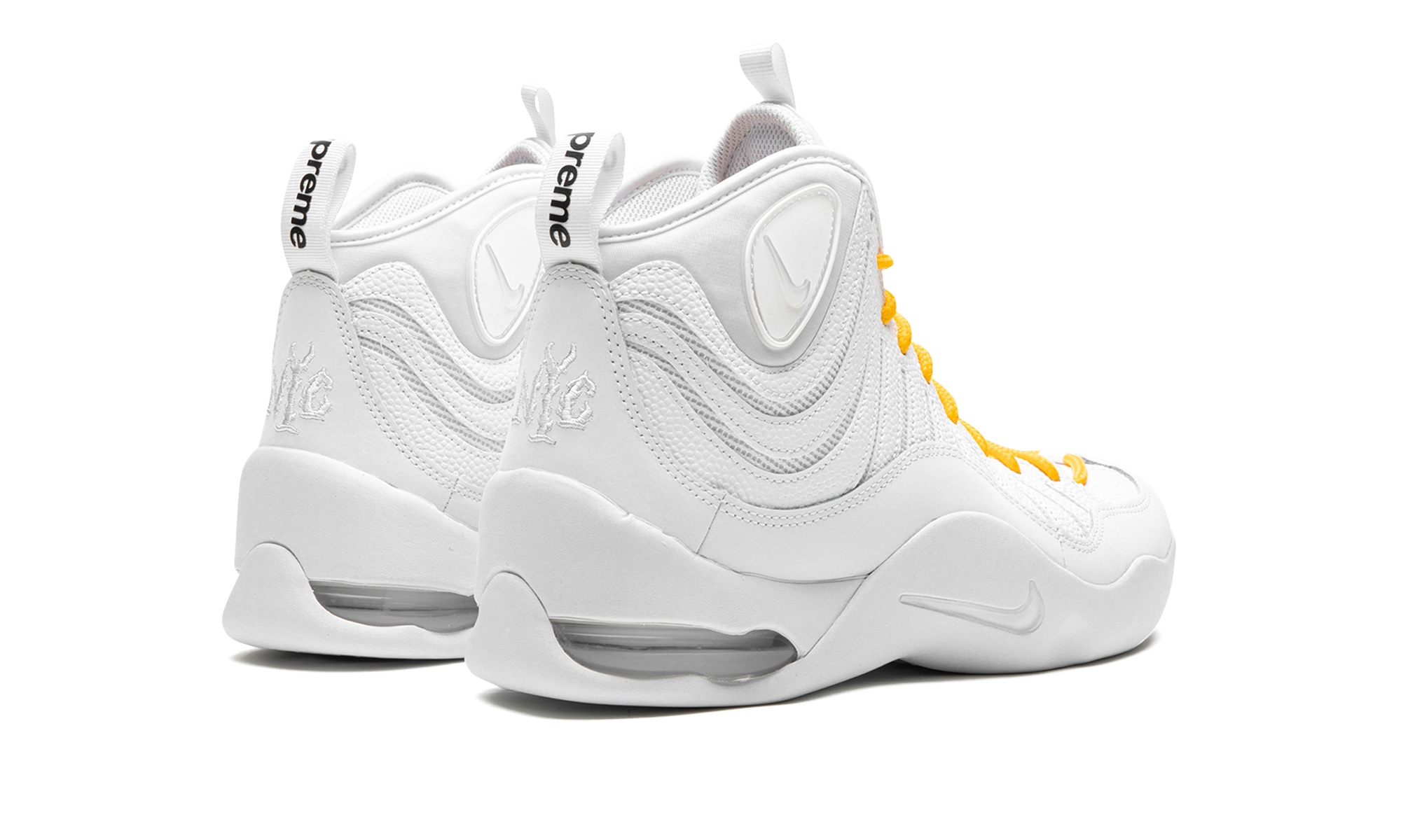 The Supreme x Nike Air Bakin “White” is a collaboration by the “World Famous” streetwear brand on the retro basketball shoe that debuted in 1997. The Air Bakin’ was worn by Basketball Hall of Famer Mitch Richmond, Tim Hardaway, and others in the NBA back in the day. The “White” colorway features a white mesh construction with white textured leather panels on the sides. A white synthetic nubuck mudguard balances the look. A tonal Swoosh can be found on the collar and a white Jeweled Swoosh appears on the side of the midsole. An “NYC” logo is found on the heel and “Supreme” detailing dots the nylon heel tab. Orange laces contrast the look. Release date: March 2, 2023 Supreme – White