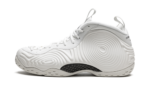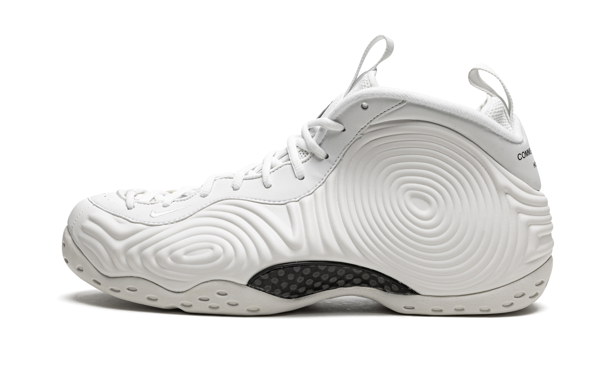 The Comme des Garçons x Nike Air Foamposite One ‘White’ is one of two limited edition colorways of the vintage basketball shoe designed by Rei Kawakubo’s storied Japanese fashion house in November 2021. The avant-garde, monochromatic white Air Foamposite One by Comme des Garçons was revealed at CDG’s Fall/Winter 2021 runway shoe in Tokyo, Japan, and is one of the most desirable sneaker collaborations of 2021. Comme des Garçons modified the Air Foamposite’s upper with wavy circular patterns in white. A small white Swoosh is embroidered on the forefoot and “Comme des Garçons Homme Plus” is printed in black on the heel. Underfoot, Penny Hardway’s signature “1 Cent” logo appears on the herringbone traction rubber outsole. Release date: November 5, 2021 Comme des Garçons – White