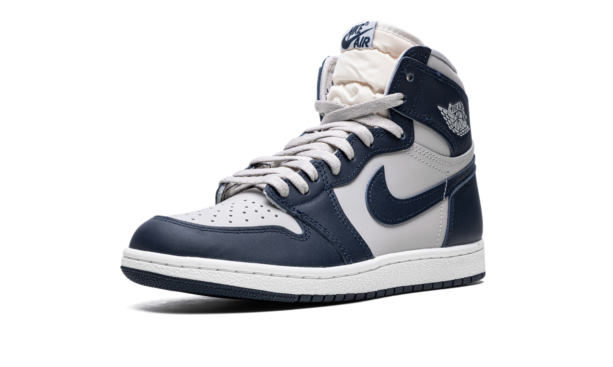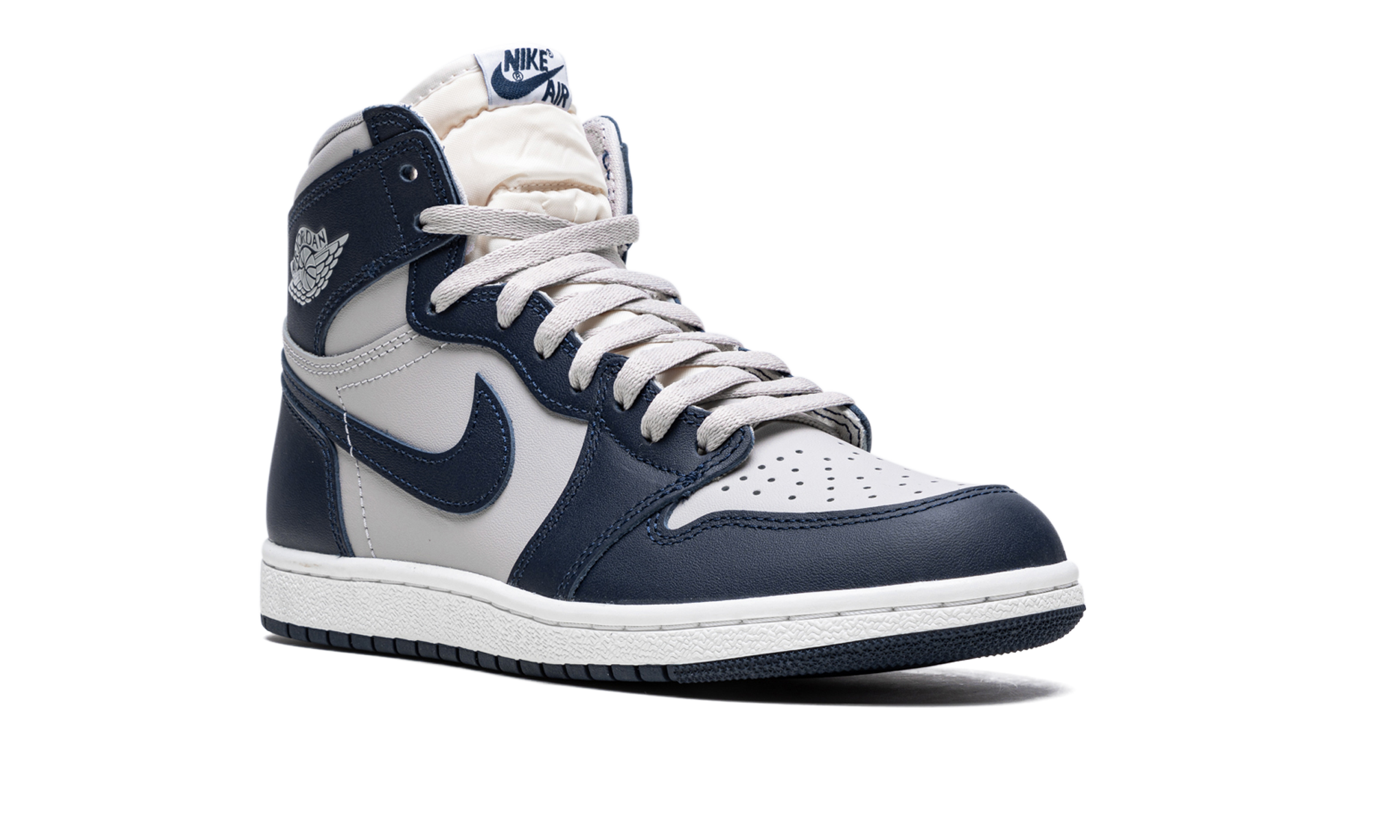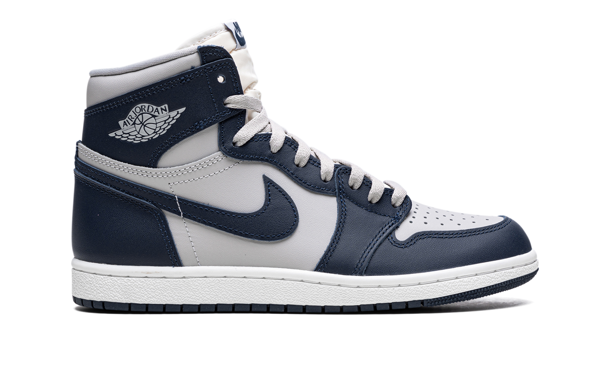 The Air Jordan 1 High ‘85 “Georgetown” is a colorway of Michael Jordan’s first signature shoe that shows appreciation to the Georgetown Hoyas, the college basketball team Jordan famously defeated to earn his first NCAA Championship in 1982. The Jordan 1 High ‘85 “Georgetown” is a near one-to-one remake of the original Air Jordan 1 High from 1985, as it features an accurate-to-original collar height and shape and panel placement, and upgraded materials. Specifically, the “Georgetown” colorway appears in the same color block as the Hoyas’ team uniforms, with Tech Grey leather on the perforated toe, mid-panel, and collar, and contrasting College Navy leather on the overlays and Swoosh branding. A Summit White “Wings” logo appears on the collar and classic “Nike Air” detailing is found on the tongue tag. It all rests on a white midsole and navy blue outsole. The Air Jordan 1 High ‘85 “Georgetown” joins the “Neutral Grey,” “Varsity Red,” and “New Beginnings” colorways in the Jordan 1 High ‘85 collection that honors the legacy of the vintage basketball shoe with retro-inspired design elements. Release date: April 2, 2022 Georgetown