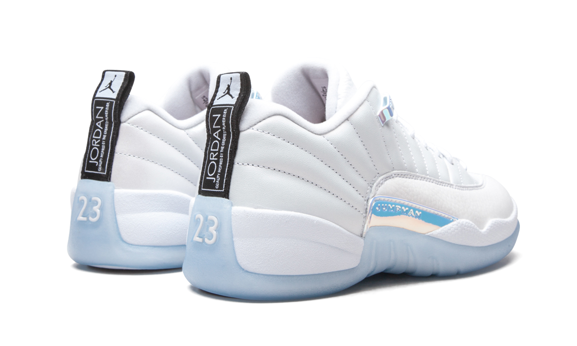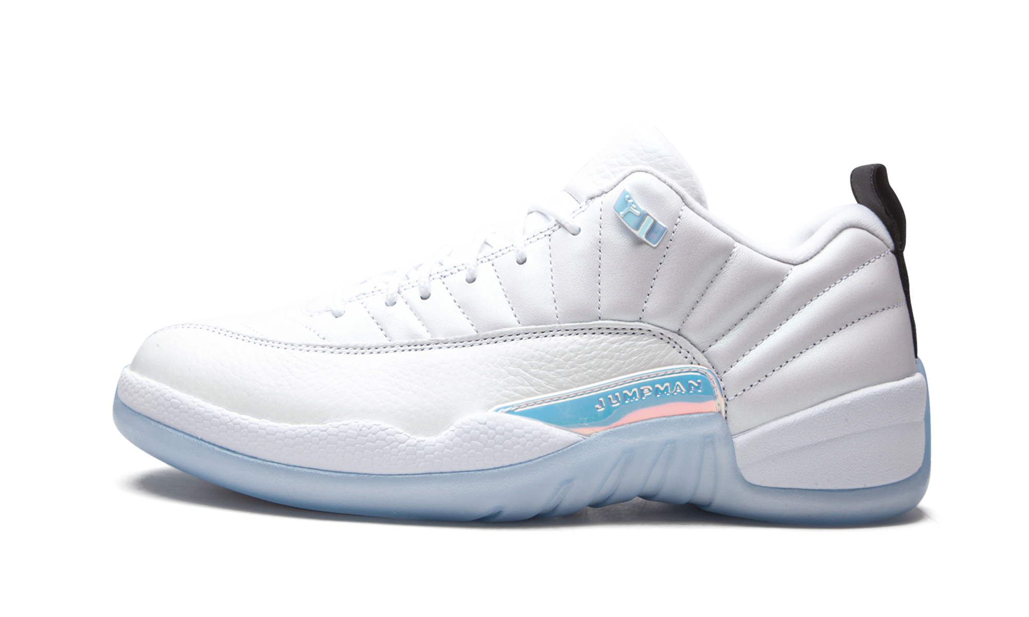 White leather/rubber Air Jordan 12 Low sneakers from JORDAN featuring contrasting panel detail, round toe, front lace-up fastening, pull-tab at the heel and rubber sole. These styles are supplied by a premium sneaker marketplace. Stocking only the most sought-after footwear, they source and curate some of the most hard to find sneakers from around the world.. Easter