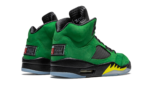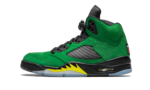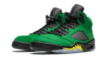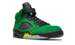 The Air Jordan 5 “Oregon” honors the Oregon Ducks as Jordan Brand celebrates the 30th anniversary of Michael Jordan’s legendary fifth signature shoe in 2020. Devoid of any Ducks branding, the colorway nonetheless graciously employs the school’s familiar green, yellow, and black color scheme. Save for the smoky translucent netting found on the mid-panel and tongue, the entire upper is cast in green suede for a bold and unique appearance. Additional styling includes black laces, a semi-translucent lace lock with Jumpman detailing, and embroidered “Team Jordan” patch on the heel. The black leather tongue displays a tonal embossed Jumpman logo and the black rubber midsole features yellow accented shark tooth detailing on top of an icy blue translucent outsole. Release date: September 12, 2020. Oregon