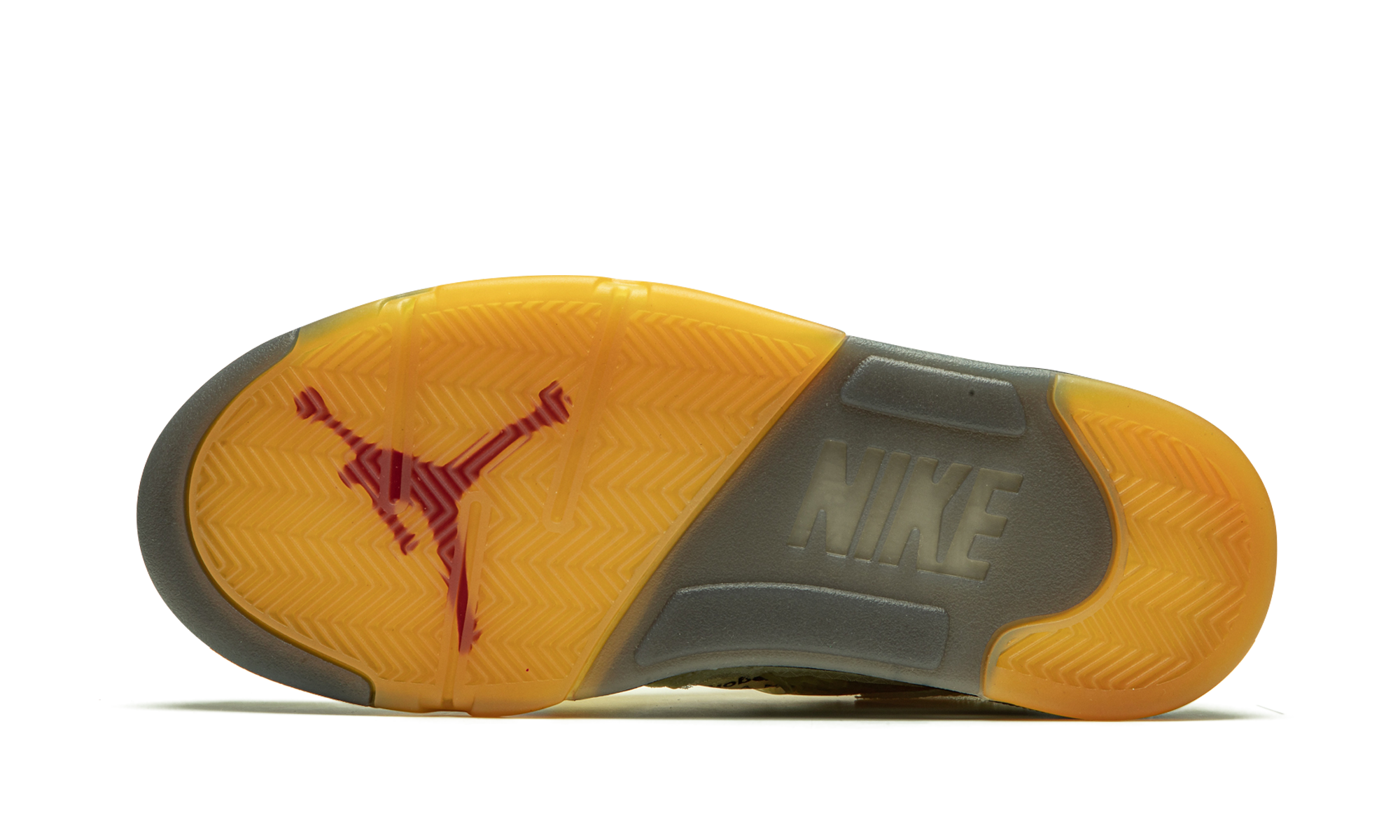 The Off-White x Air Jordan 5 “Sail” is the follow-up to Virgil Abloh’s initial Jordan 5 collaboration from early 2020. Images of the “Sail” colorway surfaced around the same time Off-White and Jordan Brand released the black-based Jordan 5 in February 2020. Like the black version, this design features Abloh’s singular deconstructed aesthetic. The upper displays exposed foam, mesh detailing, and a transparent film with die-cut circles placed randomly on the body and tongue in reference to the Jordan 2010. Off-White’s signature industrial inspired styling is applied throughout, including the Helvetica text on the laces and medial side. Both the embroidered Jumpman on the silver reflective tongue and “23” branding on the heel are finished off in Fire Red as a call back to the original styling of Michael Jordan’s “Player Exclusive” version. Additional nostalgic elements like the “Nike Air” on the heel and pre-yellowed outsole give the shoe a vintage look. Release date: October 24, 2020. Off-White – Sail