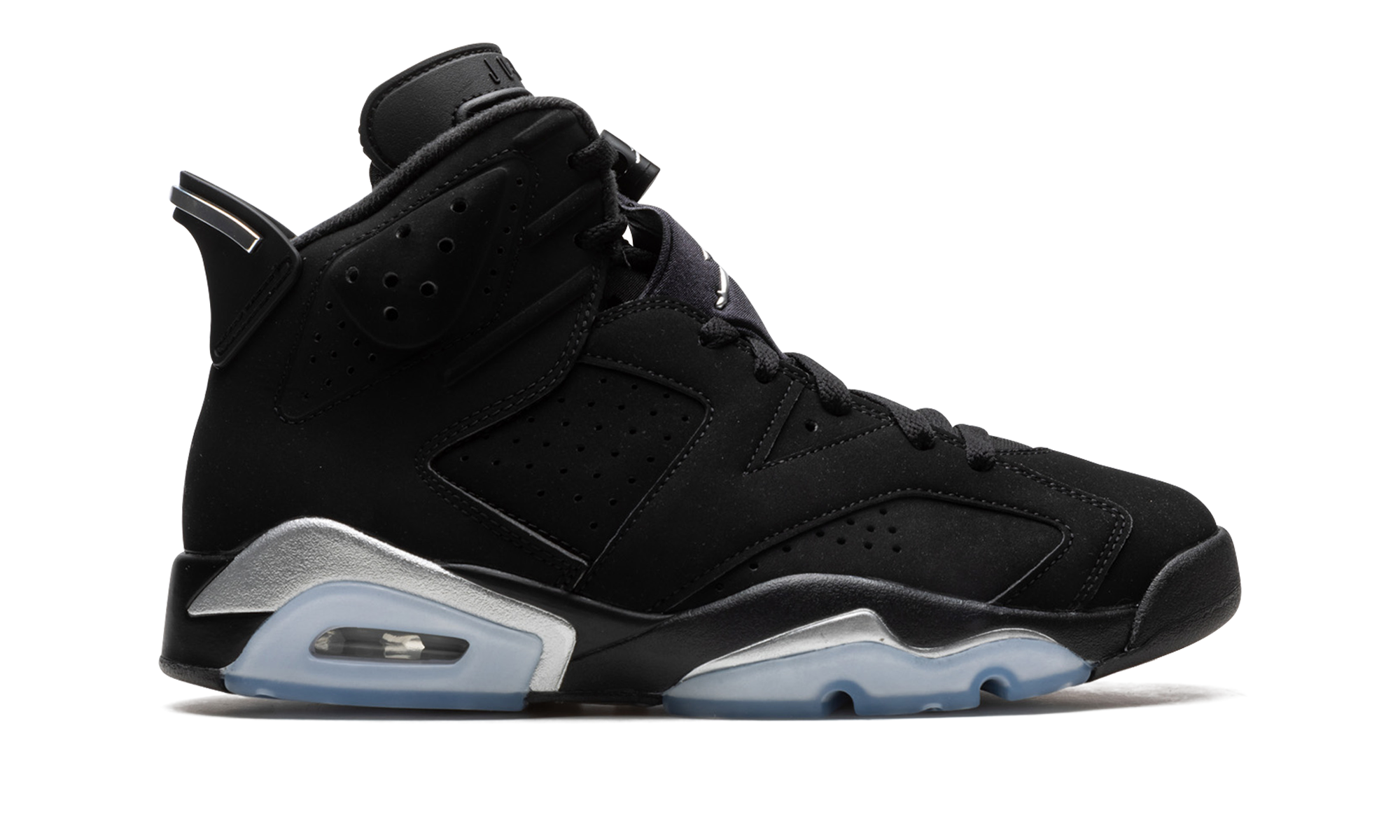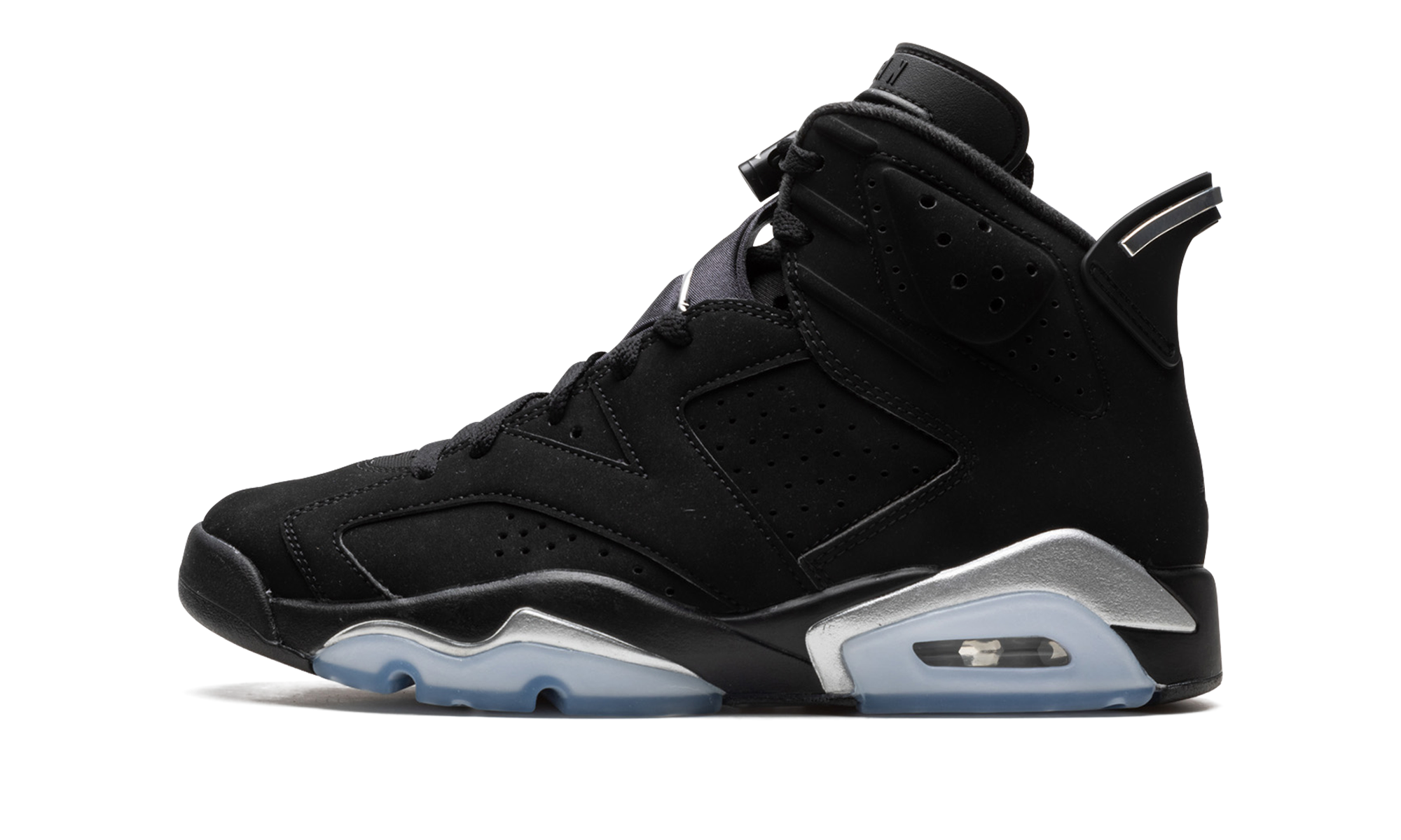The Air Jordan 6 “Chrome 2022′ is the modern reissue of the popular non-original colorway of the retro basketball shoe in mid-top form. Originally released back in 2002 on the Jordan 6 Low, the “Chrome” was brought back on the model’s original mid-top silhouette in November 2022. The modern “Chrome” color block is identical to the original version from back in the day. The shoe features a black synthetic nubuck upper with contrasting Metallic Silver or “Chrome” accents on the mudguard above the visible Air cushioning unit in the heel and on the forefoot. Additional chrome-colored detailing includes a Metallic Silver Jumpman on the tongue, and “23” branding beneath the black embroidered Jumpman on the heel. A small silver Jumpman appears on the lace toggle. Release date: November 12, 2022 Chrome 2022