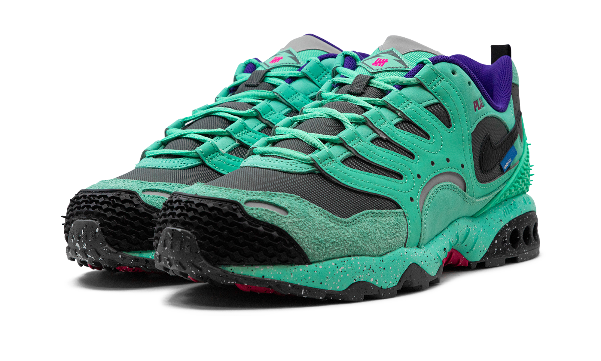 The UNDEFEATED x Nike Air Humara ‘Light Menta’ is a collaboration by the California-based retailer that continues its partnership with The Swoosh. The Air Terra Humara debuted in 1997 as a performance outdoor footwear style before transitioning into the lifestyle shoe category thereafter. Here, the model is used in collaboration with Undefeated, and the results are quite good. The upper features a combination of dark grey mesh and dotted leather on the base and Light Menta-colored leather on the overlay panels. A black tumbled leather Swoosh is seen on either side, while “Play” appears on the sides of the collar. Undefeated’s signature “Five Strikes” logo appears on the tongue. Underfoot, a Light Menta speckled midsole completes the look. Release date: February 28, 2024 UNDEFEATED – Light Menta