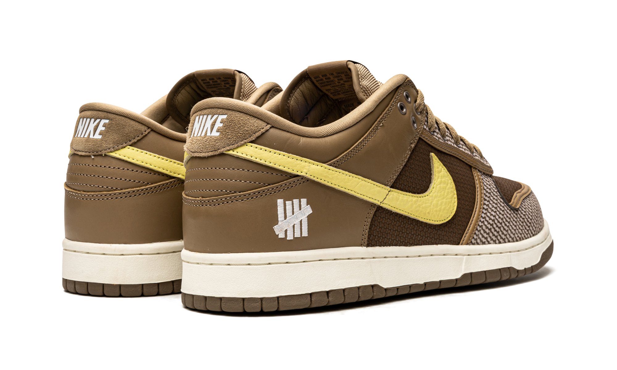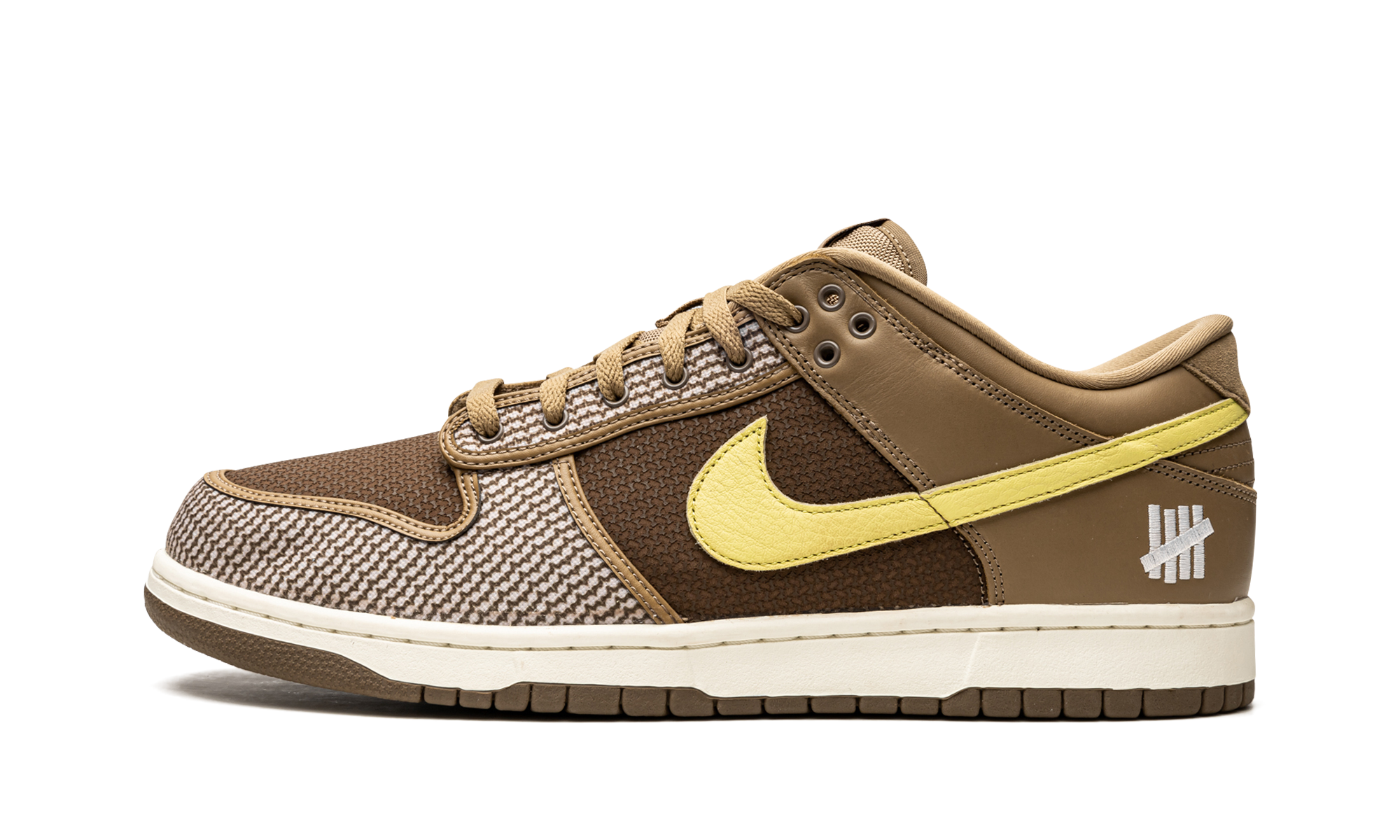 Canteen/lemon frost leather x Undefeated Dunk Low SP ‘Canteen’ sneakers from NIKE featuring panelled design, signature Swoosh logo detail, embroidered logo to the rear, embroidered logo to the side, logo patch at the tongue, round toe, front lace-up fastening and rubber sole. These styles are supplied by a premium sneaker marketplace. Stocking only the most sought-after footwear, they source and curate some of the most hard to find sneakers from around the world.. Undefeated – Canteen