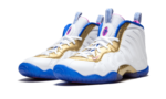 The Nike Little Posite One ‘Fuschia Blast’ pays tribute to the 1990s on-court classic with plush comfort and superior durability. This kid’s sneaker features a white foam shell highlighted with metallic gold detailing along the lacing system and midsole. Pink and blue hits add to the bold design. The ultra-lightweight Foamposite upper is created with a single-piece construction to keep you quick, and a sturdy rubber outsole with multi-directional herringbone pattern offers optimized surface grip.