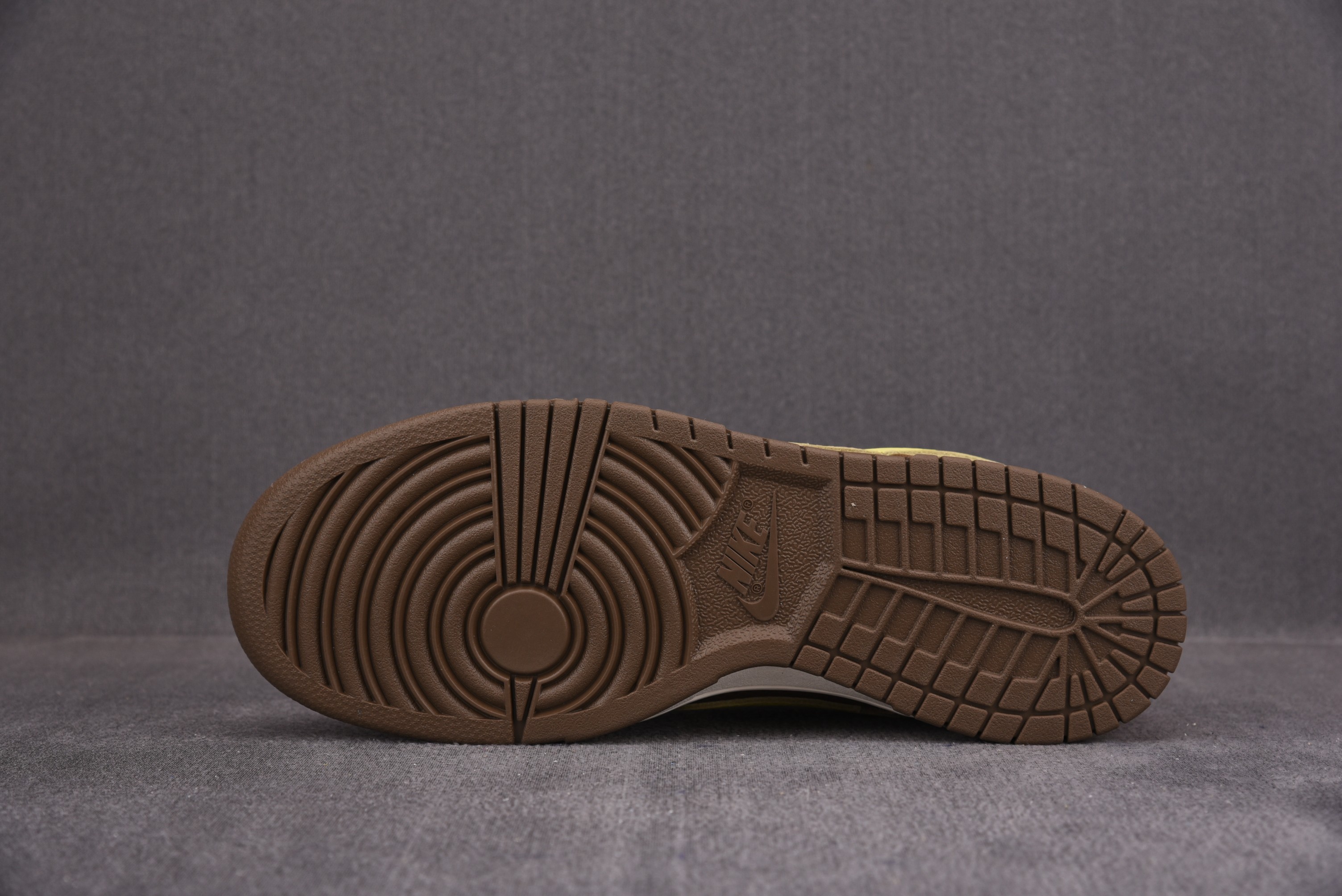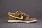 The Nike Dunk Low SP UNDEFEATED Canteen features a Canteen canvas and leather upper with a Palomino canvas toe wrap and eyestay. Lemon Frost leather Swooshes and UNDEFEATED tally mark insignias on the tongue, heel tab, and lateral heel complete the design.