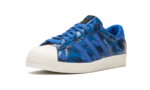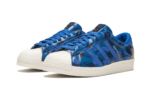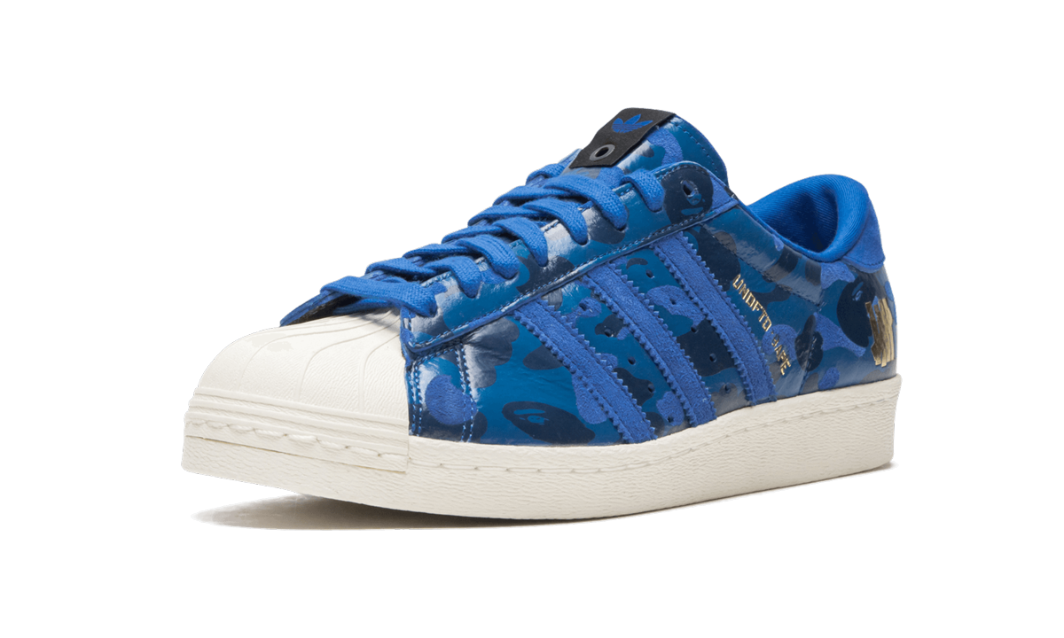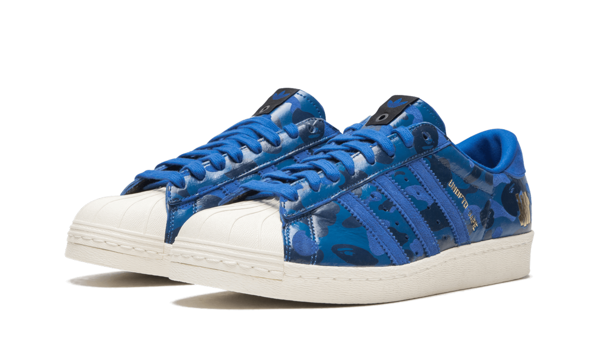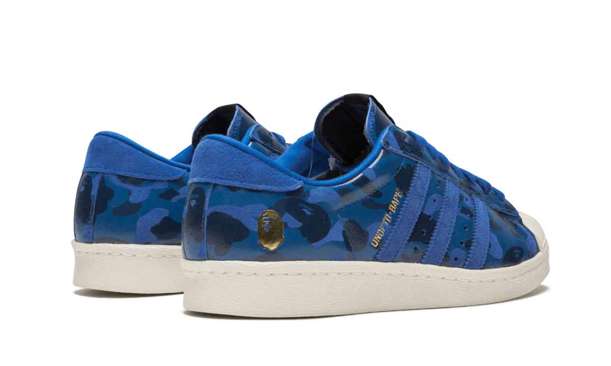 BAPE, Undefeated, and adidas Originals teamed up once again in 2015 for a two-colorway set of the Superstar. Each in BAPE’s signature camo, this version features a predominantly blue color scheme in leather and suede with a contrasting off-white sole and shelltoe. BAPE and UNDFTD branding is found embossed in gold foil. UNDFTDXBAPE