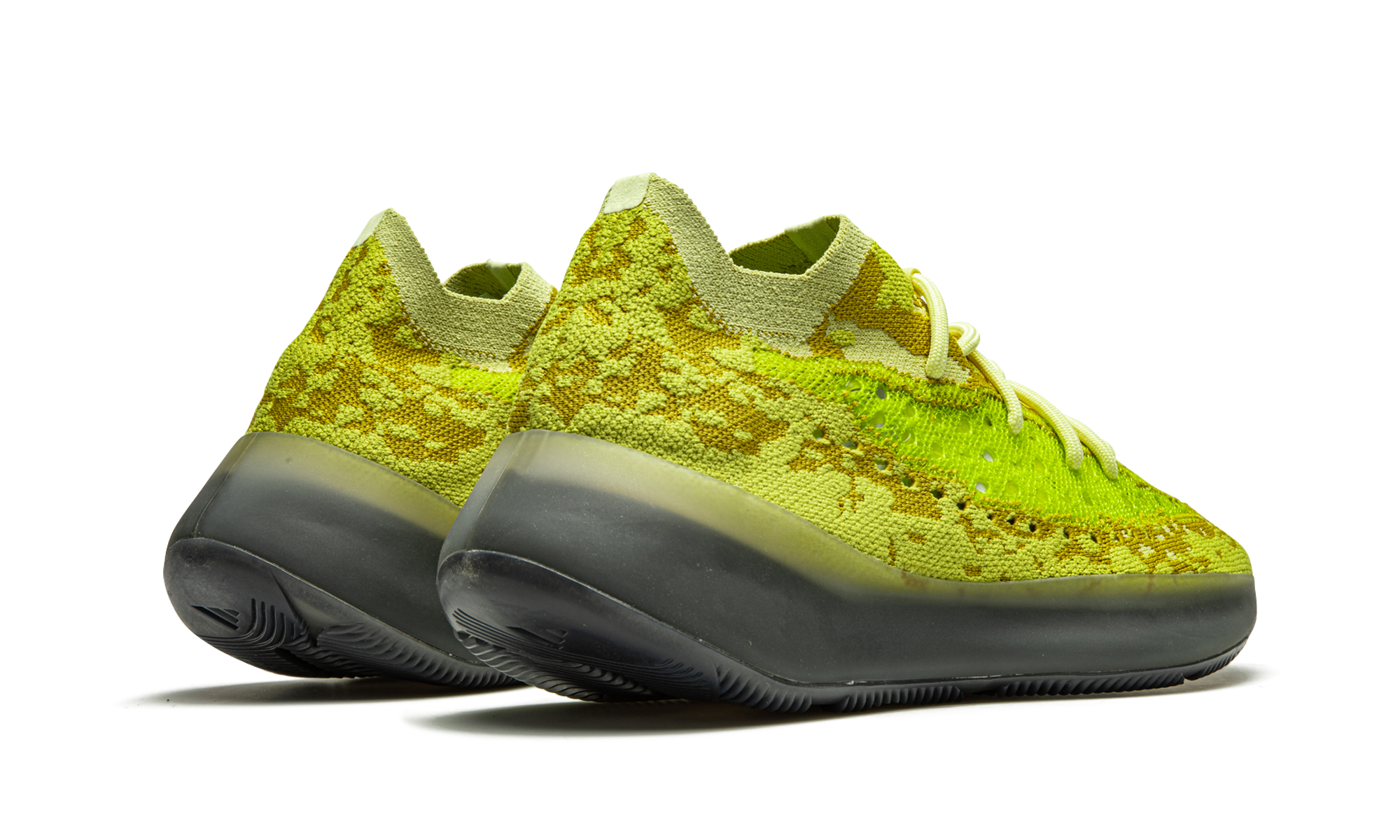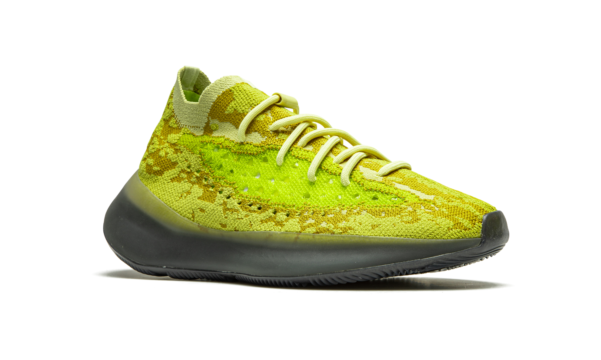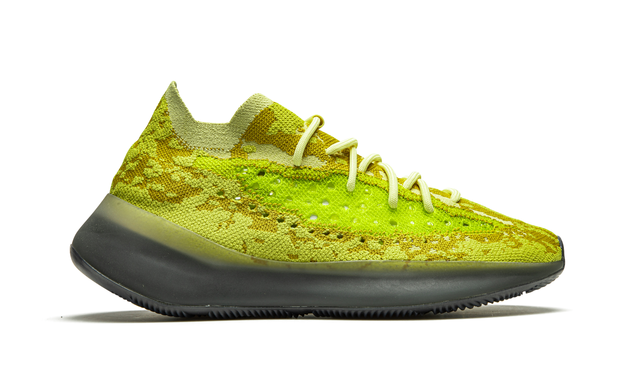 The adidas Yeezy Boost 380 “Hylte Glow” is the glow-in-the-dark version of the North America exclusive colorway that was released in December 2020 by adidas. The “Hylte Glow” is nicknamed after the shades of light and dark yellow semi-perforated Primeknit material used in the intricate pattern on the upper of the shoe. The bold design features a side monofilament stripe in neon green between the smoky semi-translucent midsole and cream laces. Adidas’s comfortable Boost cushioning technology is encased within the midsole and provides the wearer with optimal all-day comfort. The areas of bright yellow Primeknit as well as the midsole glow in the dark after being exposed to light. Release date: December 11, 2020. Hylte Glow